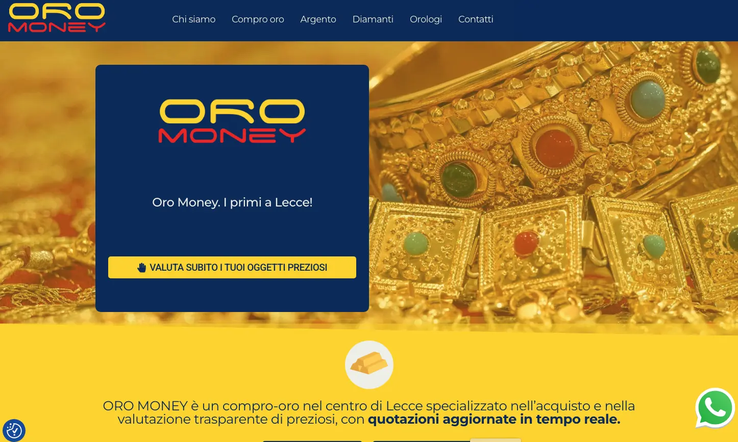 Il sito è stato sviluppato con una struttura semplice e intuitiva, pensata per permettere agli utenti di trovare rapidamente le informazioni principali sui servizi offerti e sulle modalità di valutazione dei preziosi.